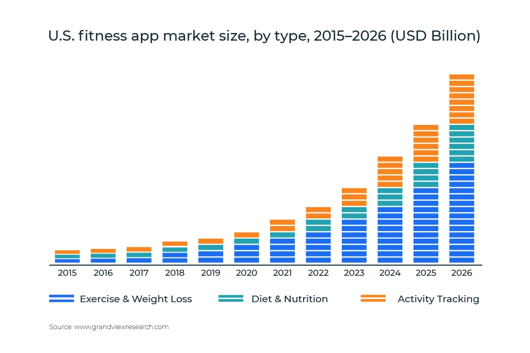 A study published in January 2019 by Polaris Market Research predicts that the fitness app market will reach $14.7 billion by 2026.